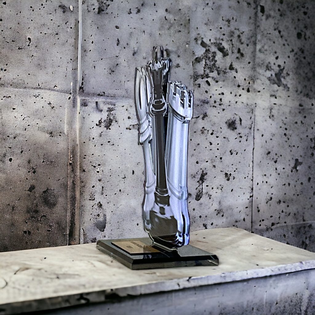 Acryltrophäe 0,6cm dick mit Acryl-Sockel 0,8cm dick. Es besteht die Möglichkeit, den Sockel mit einem Etikett zu versehen. Der Preis der Trophäe beinhaltet nicht den Preis für das Etikett. Die Breite der Trophäe ist nur ein Richtwert, sie kann je nach Thema der Trophäe variieren.