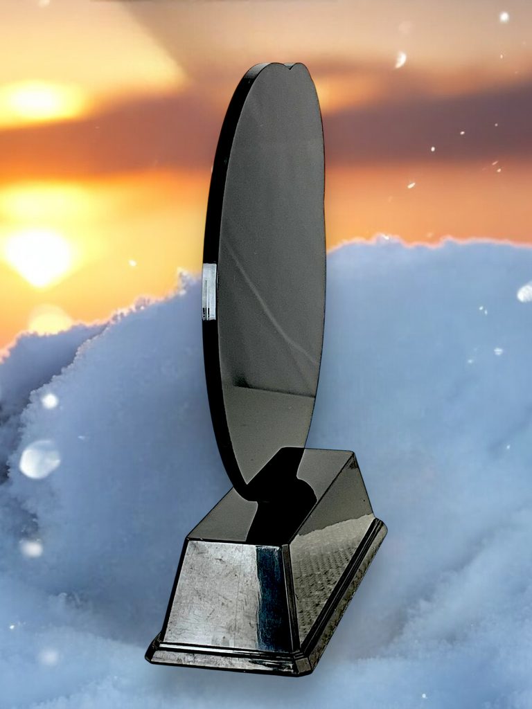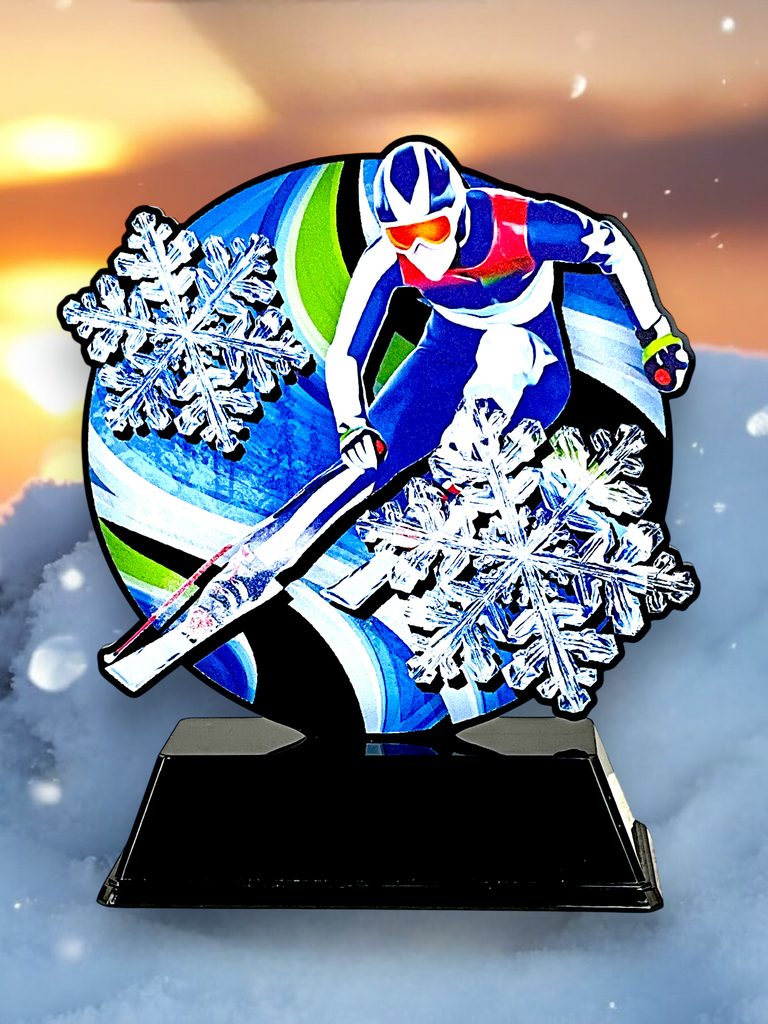 Acryltrophäe aus glänzend schwarzem Acryl mit UV-Druck. Einseitiger Druck. Im Preis der Trophäe ist der Preis für das Etikett nicht enthalten. Dicke 0,4 cm. Schwarzer Plastiksockel. Die Trophäenhöhen sind ungefähre Angaben.