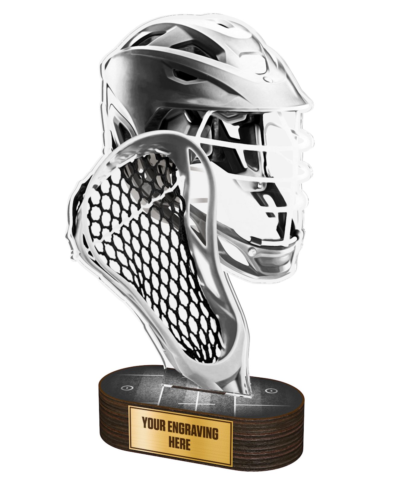 Acryltrophäe mit Holzsockel und UV-Druck. Der Preis der Trophäe beinhaltet nicht den Preis des Etiketts.