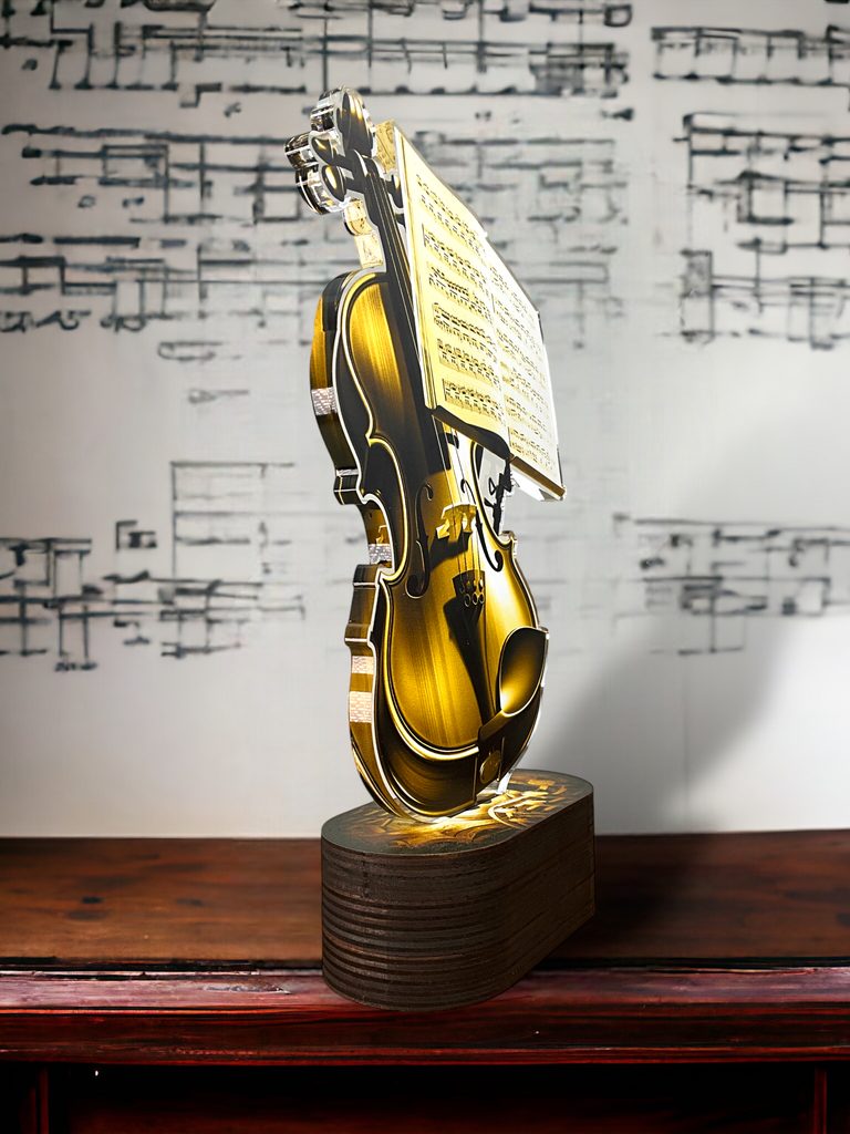 Acryltrophäe mit Holzsockel und UV-Druck. Der Preis der Trophäe beinhaltet nicht den Preis des Etiketts.