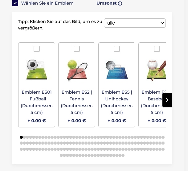 Wenn zu unseren Produkten ein Emblem bestellbar ist, weisen wir darauf direkt in unserem übersichtlichen Konfigurator hin. Dort können Sie wählen zwischen:
