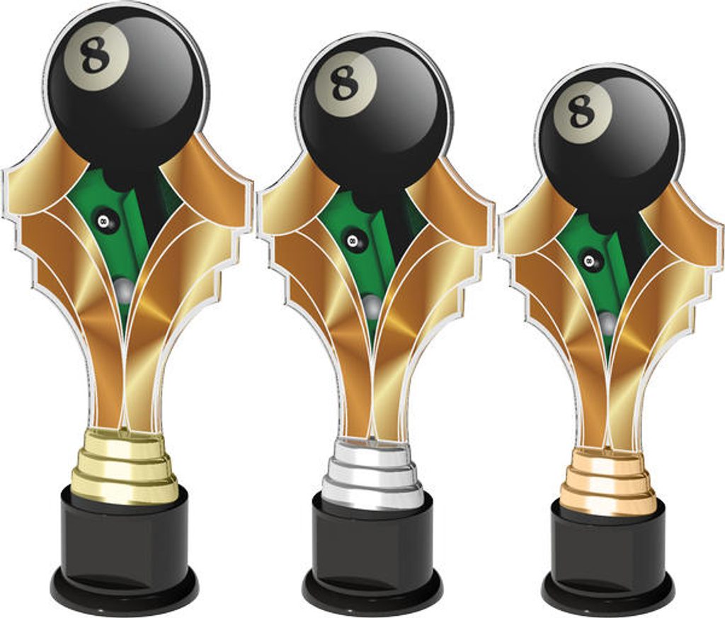 Acryltrophäe. Preis ohne Schildchen. Acrylmotiv 0.6 cm. Motivhalter A-Gold, B-Silber, C-Bronze (umändern möglich). Doppelseitiger Druck. Höhe der Trophäen sind Orientierungsbeispiele.
