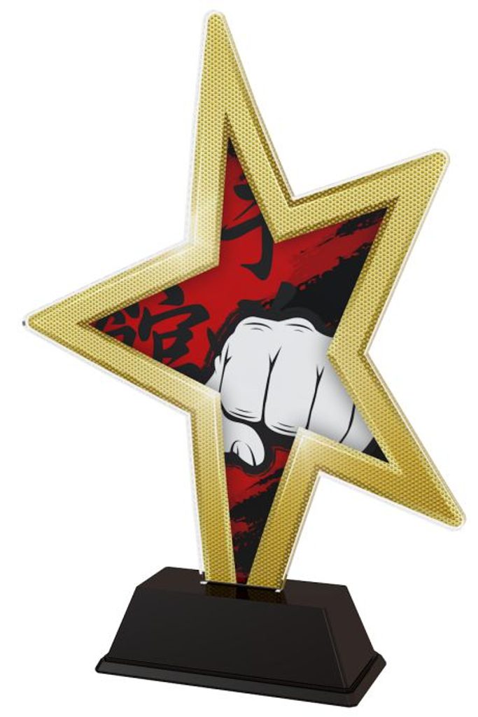 Acryltrophäe mit Druck. Einseitiger Druck. Preis ohne Schildchen. Acrylmotiv. Stärke 0.4 cm. Sockel Schwarz. Höhe der Trophäen sind Orientierungsbeispiele.