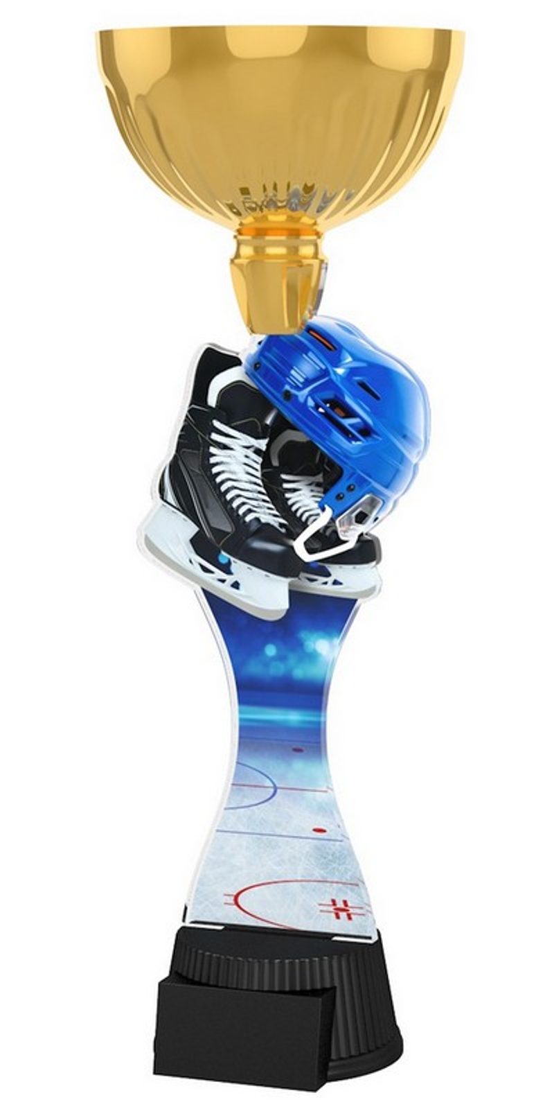 Acryltrophäe. Preis ohne Schildchen. Acrylmotiv 0.6 cm. Höhe der Trophäen sind Orientierungsbeispiele. Gold Cup. Doppelseitiger Druck.